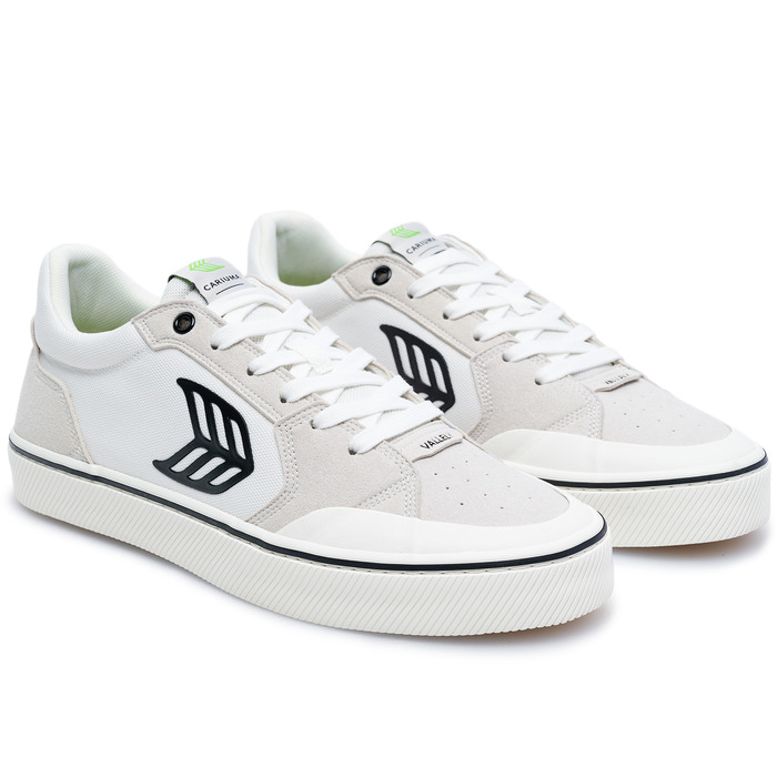Низкие кеды от бренда CARIUMA. Верх выполнен из прочной искусственной (веганской) замши со вставками из переработанной ткани. У этой обуви подкладка из переработанной сетки, шнурки из смеси из переработанного пластика и органического хлопка, съёмная стелька из пробки и пены на биооснове и гибкая подошва с цепким протектором.