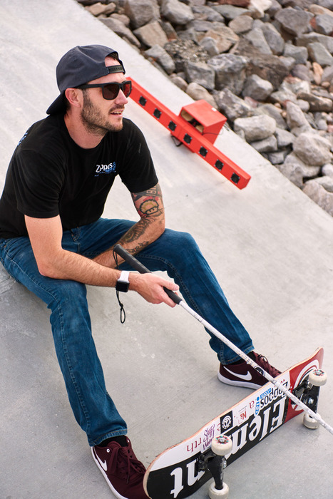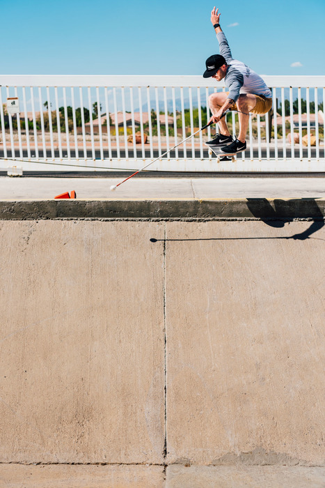 Январь 2022-го. Тридцатипятилетний профессиональный райдер Джастин Бишоп стоит на краю скейт-рампы, небрежно держа тонкую металлическую трость. Он выгибает мускулистую руку, украшенную красно-чёрными татуировками, и прикладывает ладонь к уху, чтобы послушать, как его товарищ завершает заезд впереди него. Он слышит скрежет доски своего друга по квотер-пайпу. «Ух!» — восклицает он. «Немного грубовато».