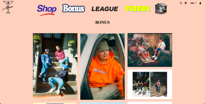 Команда ALLTIMERS пошла наперекор всем даже при создании своего сайта. А точнее его интерфейса. Может сложиться впечатление, что программисты разрабатывали страницы сайта, находясь под восторгом от трюков парней из своей команды. Что ж, может и так. Но их сайт от этой необычности только выигрывает. На нём можно приобрести всю продукцию бренда — от досок с изображениями мамонтов до губки для мытья посуды (да-да, такие товары находятся в разделе «Аксессуары»).