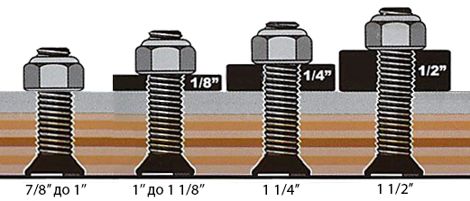 | Размер проставки, в дюймах | Длина винта, в дюймах |
