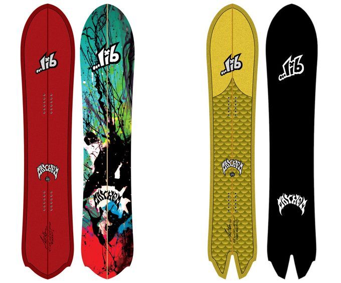 Легендарный сёрф-шейпер Мэтт Белиос — человек, создавший эти два новых сноуборда от . Mayhem Rocket (слева) имеет широкую «талию», что делает его идеальным для паудера, а Mayhem Round Nose Fish (справа) отлично подходит для карвинга.