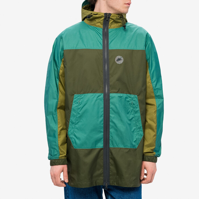 Стильная и практичная ветровка от Nike с удлиненным свободным кроем. Модель оснащена регулируемым капюшоном, застёжкой на молнию и эластичными манжетами для плотного прилегания. На груди — нашивка с логотипом бренда. Два боковых кармана на молнии обеспечивают удобство хранения мелочей. Материал — 100% полиэстер.