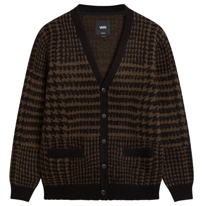 Мужской кардиган с классическим V-образным вырезом и пуговичной застёжкой от Vans. Модель дополнена двумя передними карманами, эластичными манжетами и нижним краем для плотной посадки. Стильный и удобный — идеален для повседневной носки. Состав: 63% акрил, 33% нейлон, 4% спандекс — мягко, комфортно и немного стрейча.