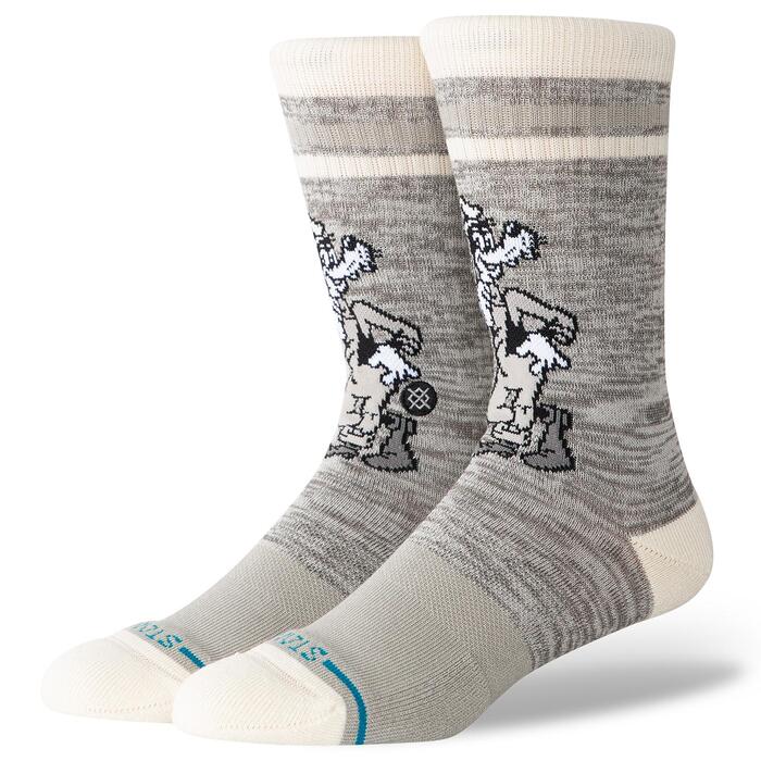 Коллаборация с Disney в стиле ретро — эти носки с изображением Весёлого Гуфа привносят игривость в повседневный образ. Благодаря эластичному материалу, амортизации и бесшовной конструкции они остаются комфортными весь день, а плотный хлопковый состав делает их мягкой базой под любой образ.