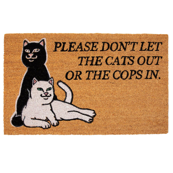 Если вы хотели купить себе придверный коврик с классическим «Добро пожаловать», то листайте ниже — это не для вас. Надпись на коврике от RIPNDIP гласит «Пожалуйста, не выпускайте котиков и не впускайте копов!». Смелое заявление, которому сложно не подчиниться.