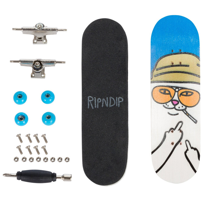 Название бренда состоит из двух частей: RIP — что означает захват места для каталки, и DIP — уйти, пока не приехали копы...а вот логотипом стал уличный котик по имени Лорд Нэрмал — плохиш, шалун и саркастичный шутник! Как говорит сам основатель, этот кот — полная противоположность милой Хэллоу Китти.