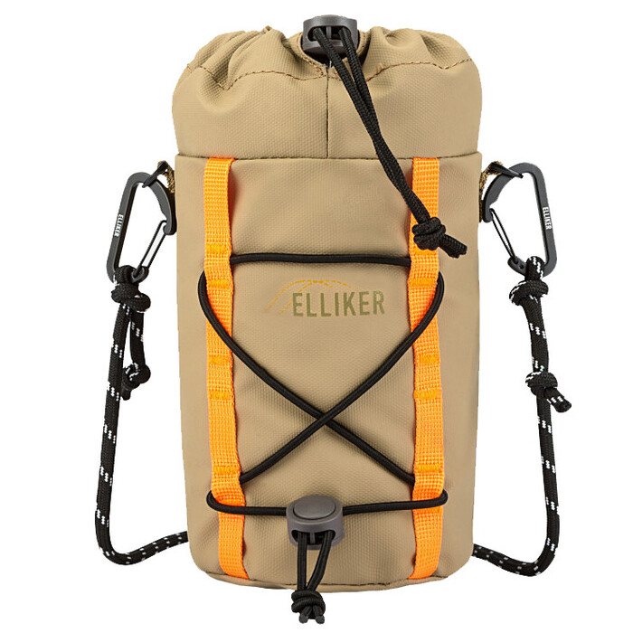 Основной материал этого чехла для бутылки — переработанный полиэстер — сертифицирован GRS (Global Recycled Standard) с полиуретановым покрытием и протестирован SGS (General Society of Surveillance). Из важных особенностей отметим банджи систему спереди, третий карабин сзади, съёмный шнурок на карабинах, основное отделение на шнурке с фиксатором и, конечно же, его водонепроницаемость.