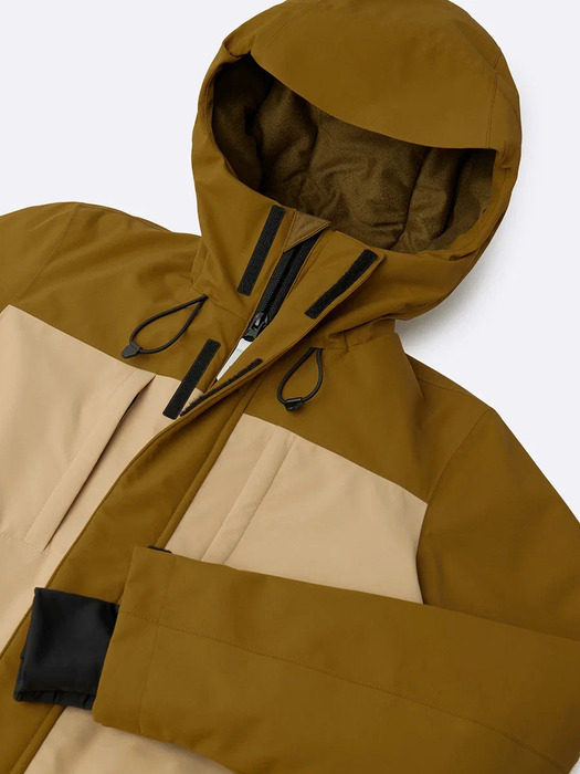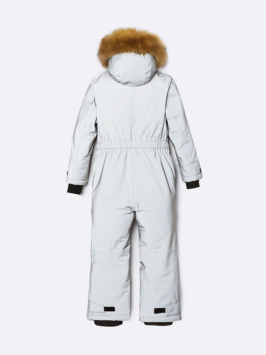 Капюшон с утяжками можно отрегулировать по голове, чтобы ветер и снег не отвлекали от прогулки. Манжеты на липучках плотно прилегают к запястьям, предотвращая попадание снега и холодного воздуха. Молния на брючинах позволяет быстро надеть комбинезон поверх обуви, обеспечивая дополнительную защиту от влаги.