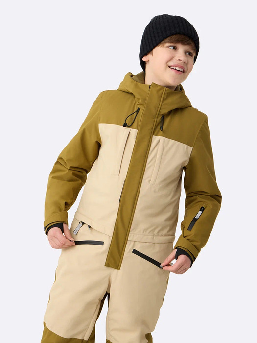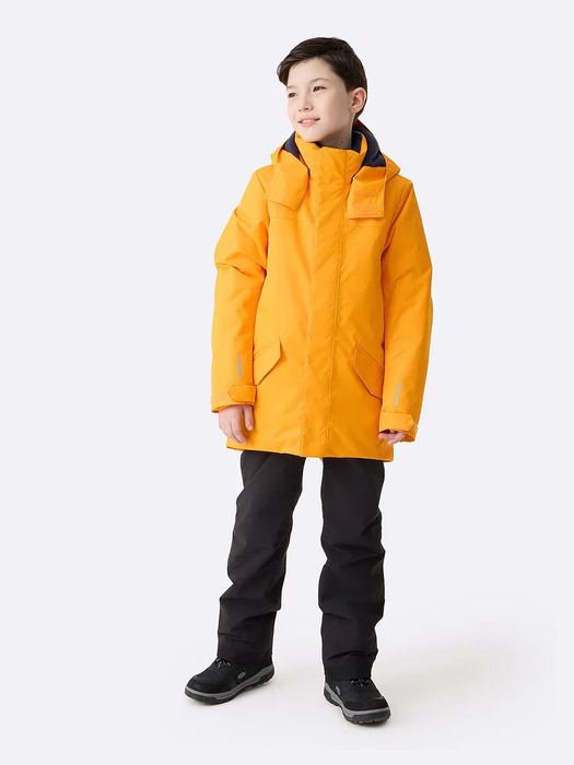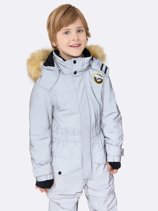 Светоотражающие детали делают детей заметными в в вечернее время. Регулируемые манжеты на липучках не дают холодному воздуху попасть в рукав. Капюшон надёжно защищает голову и шею от снега и дождя. В накладные карманы можно положить важные вещи: перчатки, телефон или ключи.