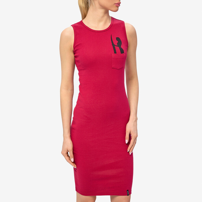 Женственное хлопковое платье с приталенным силуэтом и круглым вырезом подчеркивает фигуру без ущемления свободы движений. Деталь в виде накладного нагрудного кармана добавляет нотку утилитарного шика, а фирменный ярлык у подола — завершающий акцент бренда.