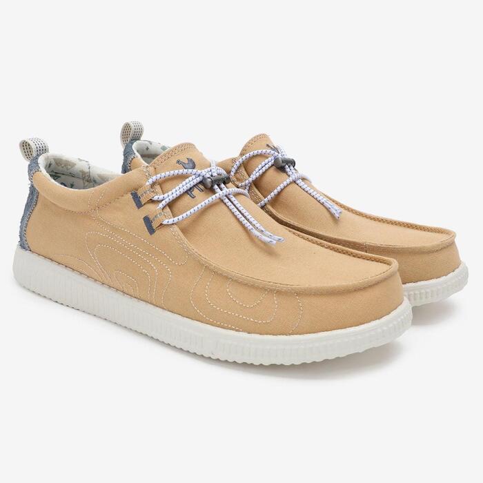 Гармония простоты и функциональности. Верх изготовлен из смеси хлопка и льна, что делает его особенно приятным в носке в тёплую погоду. Эластичные шнурки обеспечивают удобство при надевании, а съёмная EVA-стелька подстраивается под форму вашей стопы. Лёгкая промежуточная подошва из пеноматериала EVA и прочный резиновый протектор обеспечивают надёжное сцепление и защиту от износа. Это отличный вариант для тех, кто ищет стильную и практичную обувь на каждый день.