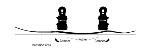 Вторым базовым прогибом является Fusion Rocker Camber - с более длинным носом, плавным и продолжительным рокером на носу, в зоне между креплений и на хвосте, он идеально подходит фрирайдным моделям, так что если вы ищете доску для глубокого снега, в коллекции Never Summer она, скорее всего, будет обладать именно этим вариантом.