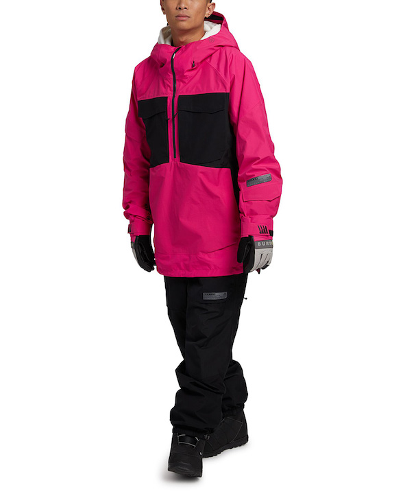 Анорак слегка отсылает к “старой школе”, но с полным набором современных технологий. “Правильная одежда для соответствующих условий” — так Burton описывает модель. Куртка оснащена двухслойной мембраной Gore-Tex и проклеенными швами. От перегрева и переохлаждения поможет технология Living Lining — трехслойная система, которая отводит влагу от тела, специальный наполнитель сохраняет тепло в нужные моменты, а “умные” волокна открываются при разогреве и сжимаются, сохраняя тепло при остывании. Карманы в области груди оригинально интегрированы в дизайн. Вентиляционные молнии, снегозащитная юбка и утяжки также на месте.