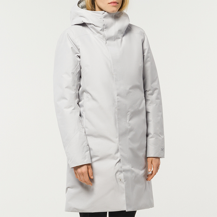 Женское пуховое пальто от Arc’teryx – один из самых технологичных вариантов в нашей подборке. Верх из плотного нейлона с двухслойной мембраной GORE-TEX, дополненный молниями WaterTight™ от Vislon, не пропустит влагу внутрь. Аналогично с мужской моделью Therme, здесь тоже используется 2 вида утеплителя – смесь из пуха и пера в соотношении 75/25 и синтетический материал Coreloft™ в особенно влажных зонах.