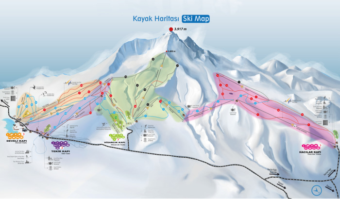 Горнолыжный курорт Эрджиэс-Кайзери расположен в регионе Центральная Анатолия между высотами 2100 и 3300 м. Для катания на лыжах и сноуборде есть 55 км склонов и 14 подъёмников.