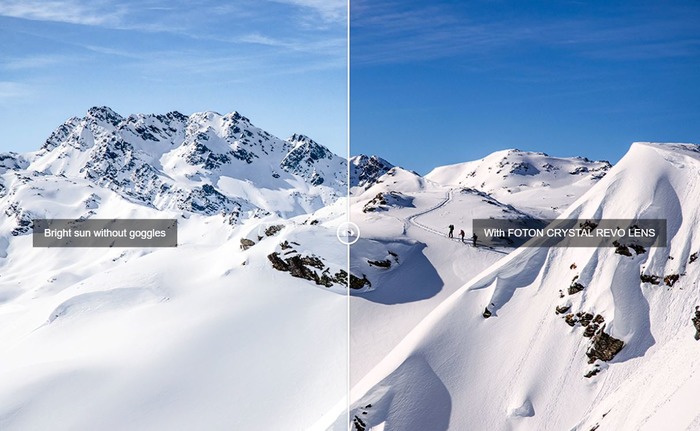 В фотохромных версиях линзы с фотохроматическими свойствами располагаются ближе к лицу, чтобы лучше работать при низких температурах. Они механически закрыты защитной прозрачной линзой или прозрачной линзой с отражающим покрытием Revo.