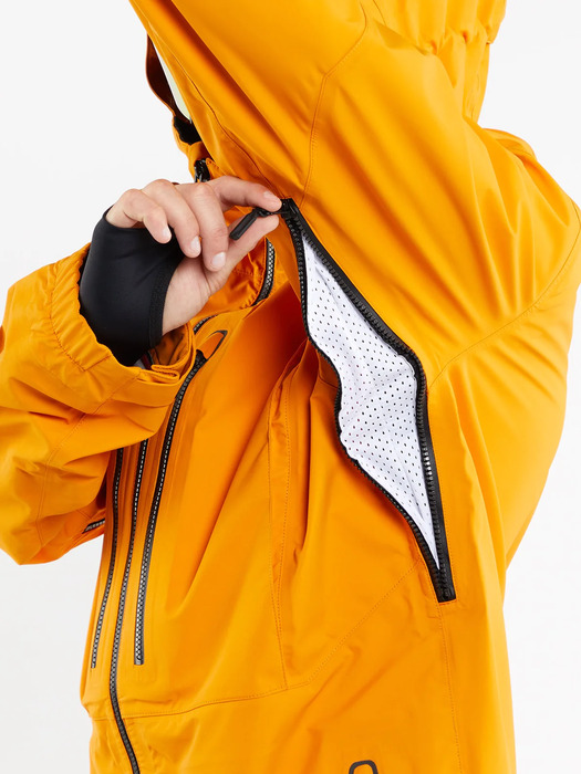 Из особенностей также стоит отметить: мембране V-Science 2-Layer Shell 10K (10000 мм/10000 г/гм²), обработку ткани водоотталкивающим материалом Non-Fluorinated DWR, вентиляционные отверстия на молнии с сетчатой подкладкой в области подмышек, кольцо для ски-пасса и регулируемую снегозащитную юбку.