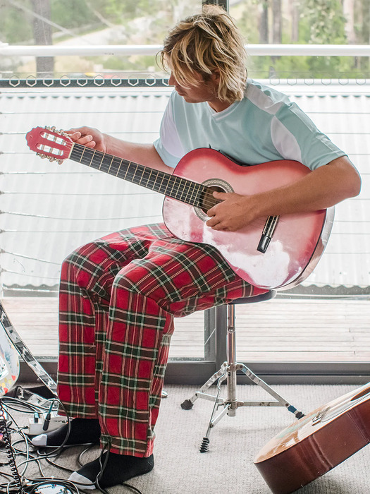 Эти брюки, созданные в сотрудничестве с художником, музыкантом и одним из самых ярких персонажей сёрфинга Ноа Дином, отличаются энергичным и по-настоящему авангардным стилем. Изготовленные из смеси хлопка и эластана и имеющие свободный зауженный крой, они не жертвуют комфортом ради стиля.