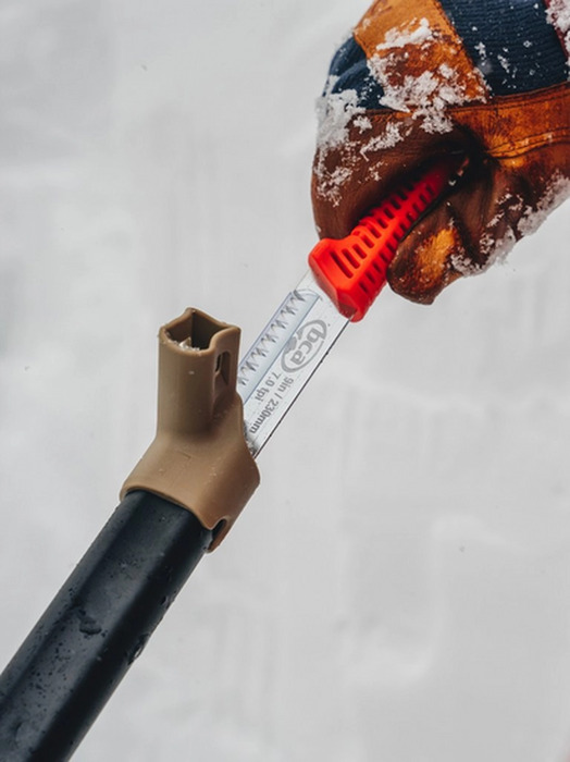 Овальное телескопическое древко с дополнительными рёбрами жесткости по бокам обеспечивает лучший хват и дополнительную прочность без увеличения веса. Эта лопата разработана для любителей путешествовать по бэккантри безопасным способом.