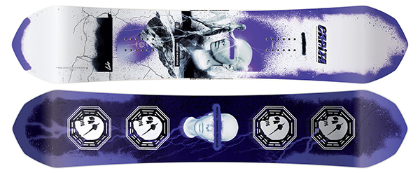 — про-модель Артура Лонго настоящая all-mountain ракета, которая отлично себя чувствует как на подготовленном склоне, так и в воздухе. Классический кэмбер с небольшими плоскими зонами, направленная форма, тейпер и средняя жесткость (6 из10) делают эту доску максимально стабильной на любой поверхности. Это максимально универсальный сноуборд. Достаточно посмотреть любое видео с участием Артура Лонго, чтобы понять на что способна и для чего предназначена эта доска. К тому же, у сноуборда минималистичный дизайн, украшенный собственными рисунками Артура!