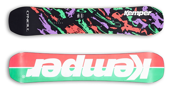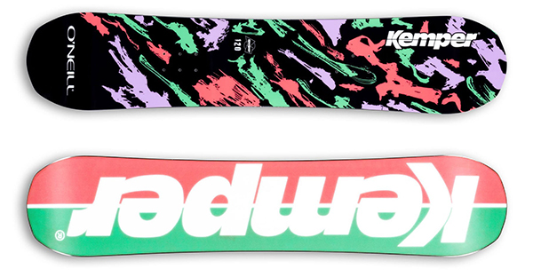 И снова коллаборация! O'Neill и Kemper Snowboards. Яркий парковый твин, который имеет среднюю жесткость (5 из 10), сердечник из смеси тополя и бамбука и прогиб Park Camber, который представляет из себя ярко выраженный рокер в центральной части, дополненный зонами кэбера под закладными, переходящими в рокер.