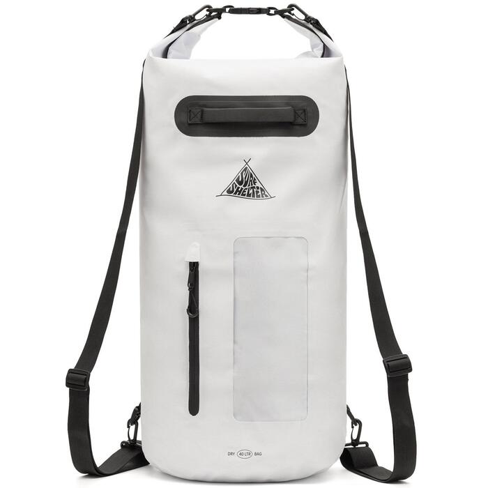 Максимальная функциональность в 40 литрах. Этот гермомешок подойдёт для перевозки всего необходимого на несколько дней: одежды, обуви, даже небольшой аптечки. Особенность модели — внешний карман с прозрачной вставкой на влагостойкой молнии: в него удобно класть документы, карту или смартфон, не раскрывая основной объём.