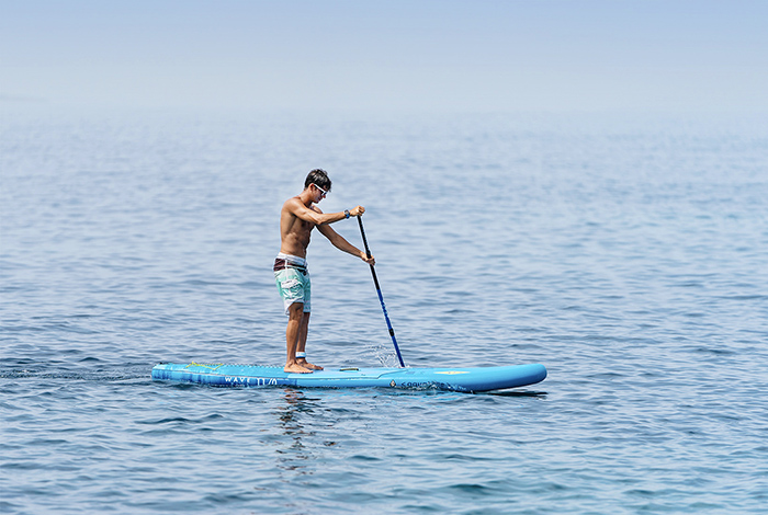 Сапборды Wave и Wave Plus – также изготовлены из облегченных материалов, но усилены ПВХ-стрингером шириной 13 см и еще одним зеркально расположенным стрингером на днище сапборда, что дает дополнительную прочность.