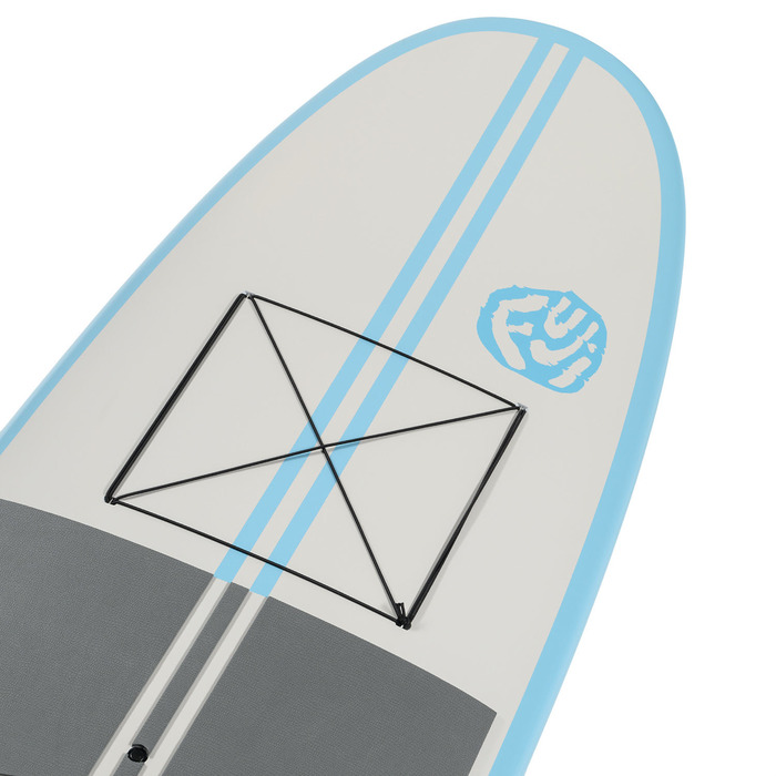 На верхней палубе в носовой части есть каргосистема для хранения и перевозки вещей. В центральной и хвостовой частях расположен большой мат из EVA для того, чтобы райдеру было удобно стоять на доске и ноги не скользили. Ещё в хвостовой части расположены две закладные для крепления страховочного лиша. Шейп доски включает в себя закруглённый острый нос, достаточно широкую центральную часть и скруглённую хвостовую часть, что вместе делает этот SUP очень устойчивым, стабильным и маневренным.