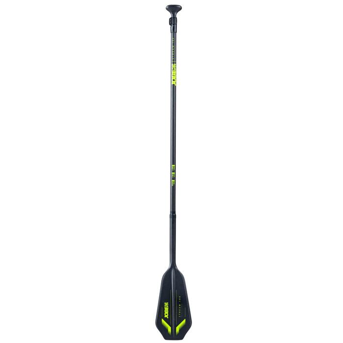 А это уже конструкция из трёх секций. Кроме того, у этого весла тоже есть удобная Т-образная рукоятка из стекловолокна. Длина весла: 180 — 220 см. Ширина лопасти: 20,3 см. Вес: 780 г. Материал древка — 80% стекловолокно, 20% карбон, материал лопасти — 80% карбон, 20% стекловолокно.