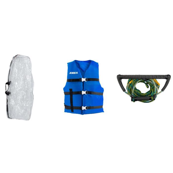 В комплект, помимо самого ниборда, входят защитный жилет, прозрачный чехол, фал и рукоятка.