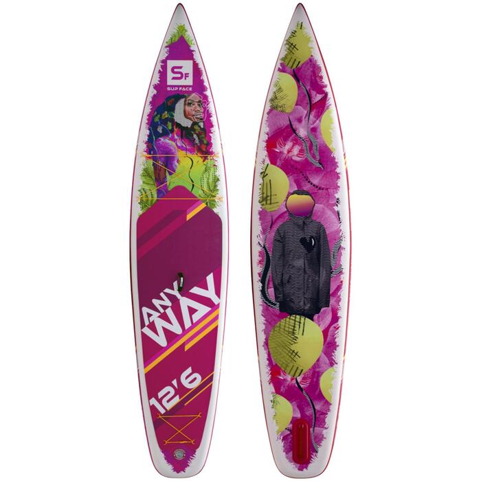 На палубе и дне расположены яркие дизайнерские принты, разработанные специально для линейки SUP face. Это эксклюзивная работа дизайнера Jaz DA, созданная для сапбордов серии Creative.